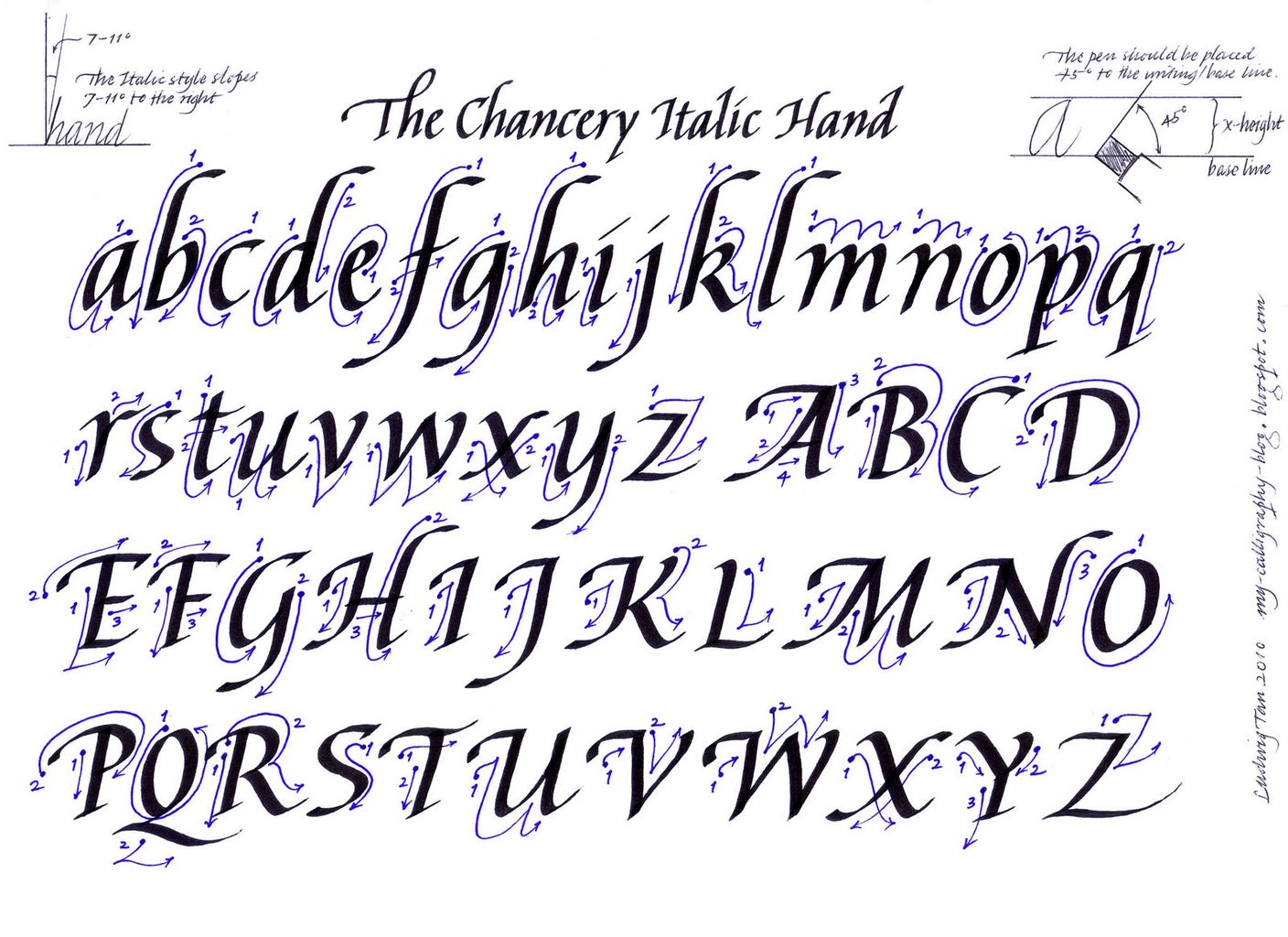 ^ Chancery : cursive, form of italic script used by the scribes of the papal Chancery in Renaissance Italy, also known as cancellaresca.